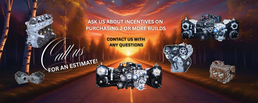 Subaru and Toyota engines. Long blocks, short blocks, and cylinder heads. Contact us if looking for a specific build or if wanting to order a specific item. Ask about any on going promotions.